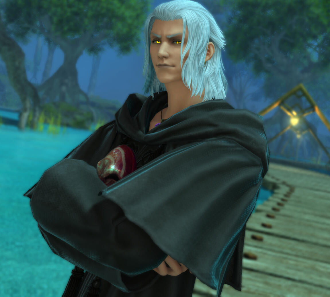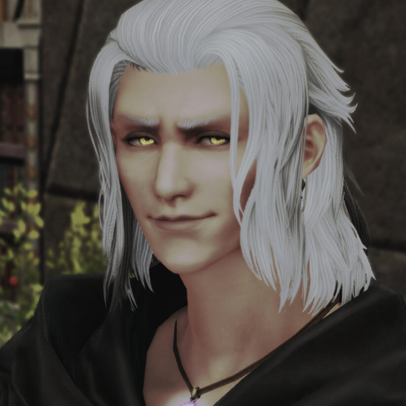 Whatever it is that you're desiring to know about the traveler whom goes by the name of Aidoneus, it's likely very limited information at the best of times. Most of the information given is something heard in passing as a snide comment, or from a hushed tone from his traveling companion, Philos, or the infamous Warrior of Light himself. Anything more than that is beyond what he's willing to give up about himself - not out of shame, mind you. He simply doesn't respect you enough to tell more about himself - that's an honor you earn. And, sweet little adventurer, you're definitely not up to his standards. This is not an opinion, but a complete guarantee. Even those he truly values are often finding it difficult to reach the heights that he puts them upon - all with a singular exception, of course.And that most certainly is not you.. . The form that Hades - Aidoneus - chooses between is the comforting form of Solus zos Galvus and his original one from a world once whole, a time long ago. While most will see a white-haired Au'ra with golden eyes, constantly scowling at the world around him, those close enough - or powerful enough - to see beyond that veil will see one of these two forms. This spell that he weaves to change both his form and his name is a powerful one, but it's not wholly unbeatable. After all, typically those who do know of him - whether as Solus zos Galvus or as Emet-Selch - can typically see beyond the carefully crafted spell. He's not exactly as powerful as he was when he fought the Warrior of Light, after all.. . Is he good?