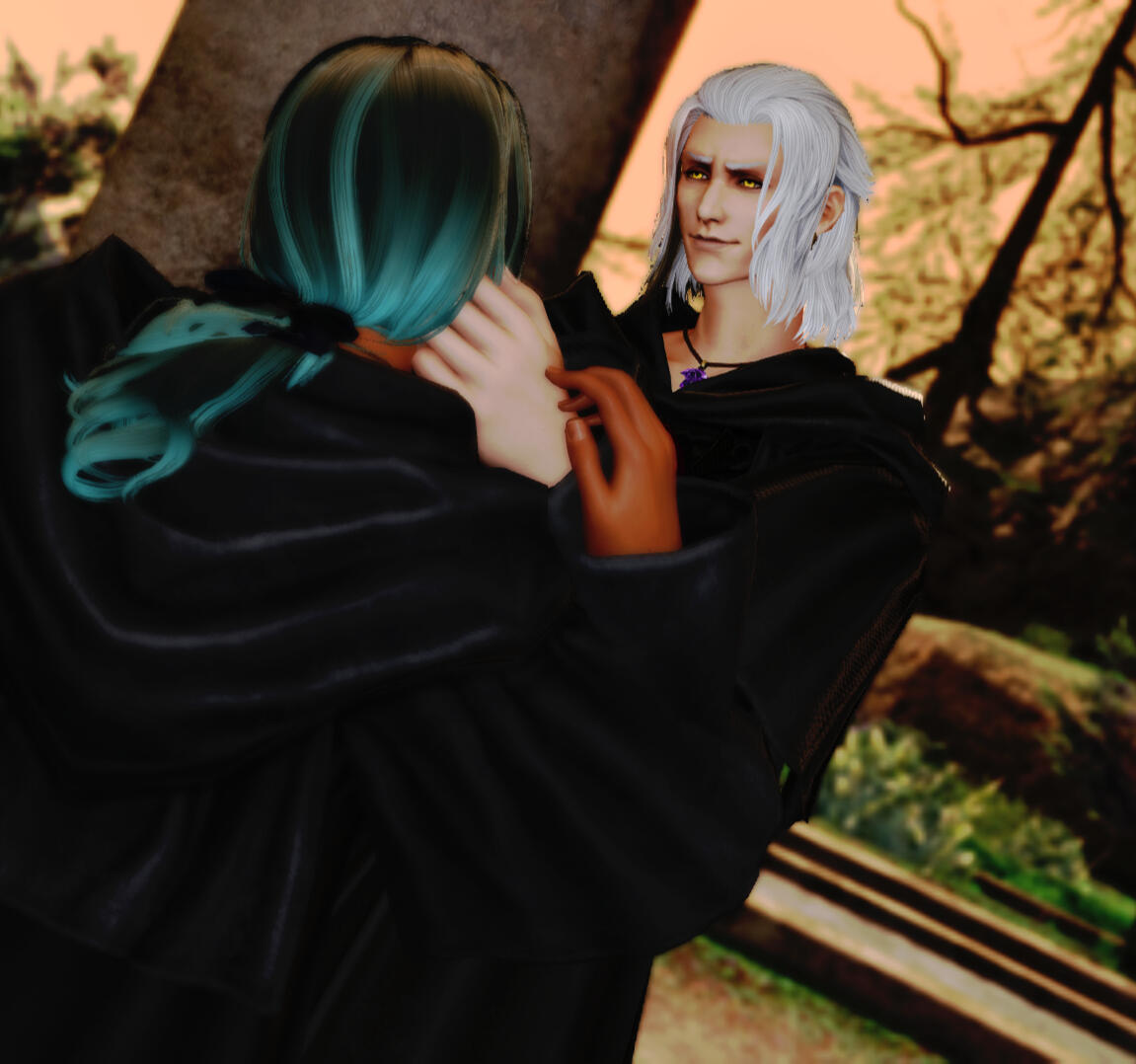 Wanting to be left alone, having fulfilled as much as his duty as he could, Hades doesn't often introduce himself as Hades nor does he introduce himself as Emet-Selch, lest you're one of the Convocation or someone he once knew in the World Unsundered. Instead, he's a simple au'ra traveler who goes by Aidoneus Gemini, who often is with his beloved viera companion - Philos.Does he have to go to such lengths to hide who he is when his appearance is so alike to how he was?